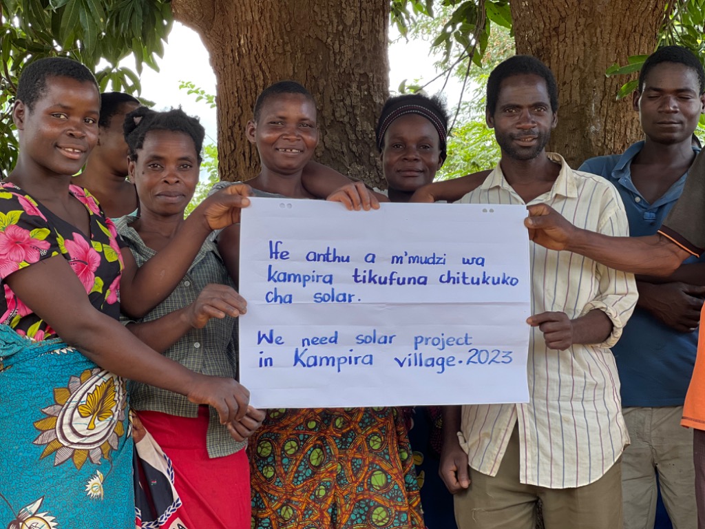 Community Solution: Build a community solar charging station in Kampira. The charging station will have eight 375-watt panels and 100 USB ports, allowing it to charge 100 phones at a time. The station will be installed by Kumudzi Kuwale (Village Light), a Malawian renewable power company. This company will also provide around 100 rechargeable solar lanterns that Kampira will distribute to community members for household use. On a weekly basis, community members will pay to recharge the lanterns at the charging station. Kampira will save proceeds from the solar station to finance future community projects.